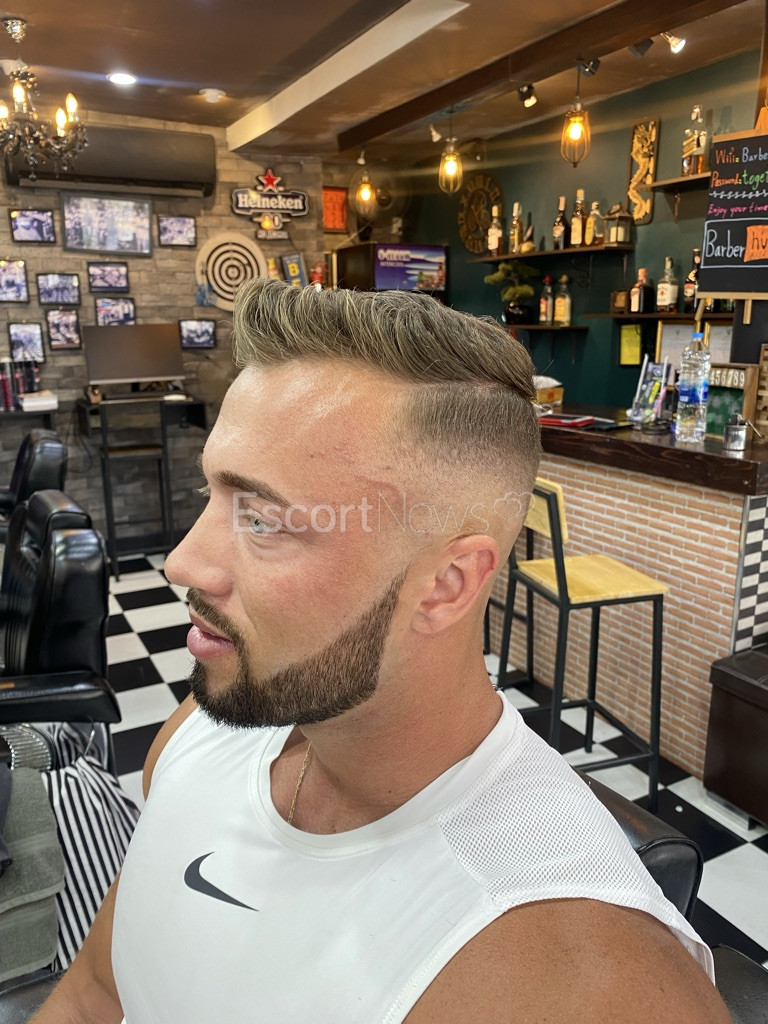 I have blue eyes, dark blonde hairs. My Body is shaved lean and muscular and my cock is nice and thick.
